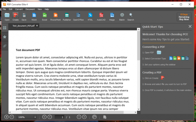 Il programma è a pagamento, ma ha una versione gratuita di 7 Giorni. Per scaricarlo rechiamoci sul sito ufficiale. Scegliamo Download Now ed iniziamo a scaricarlo. Dopo una veloce istallazione il programma si presenta molto semplice ed intuitivo, nonostante sia solo in inglese per ora. Per convertire un PDF andiamo su Open e apriamo il nostro PDF. La schermata si presenta simile a questa: