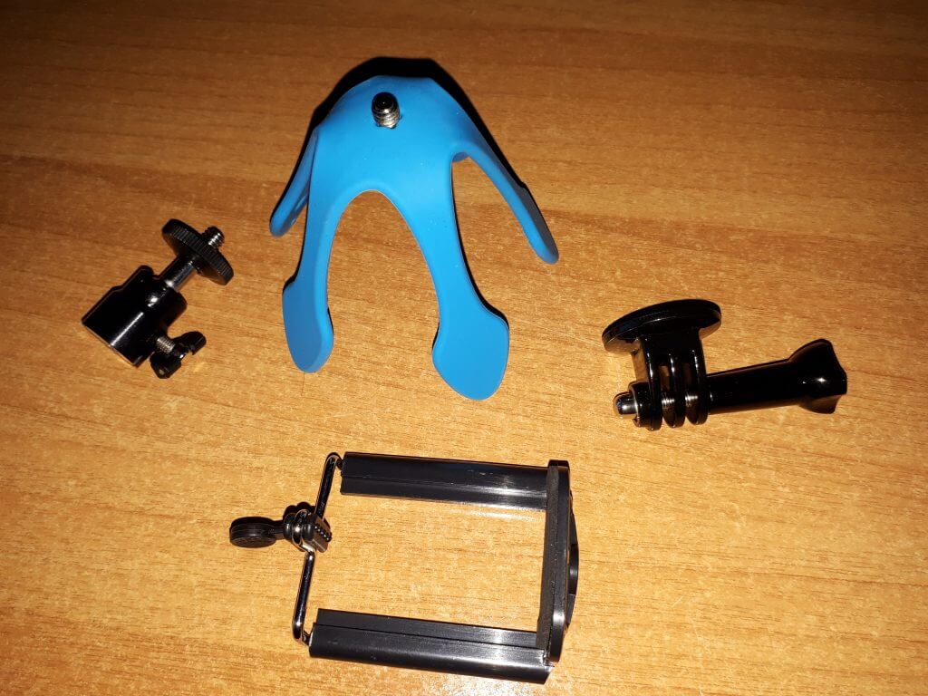 Il “primo pezzo“, ossia il geko azzurro, è ben fatto, i piedini mantengono stabilmente la posizione che gli viene affidata e, grazie alla loro stabilità è possibile fissare tranquillamente lo smartphone (o la action cam) nei punti più difficili, rendendo possibili scatti da angolazioni solitamente irraggiungibili o rendendo possibile fare dei fast-motion di ottima qualità senza sforzo.